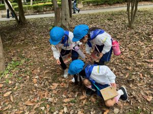 先週の金曜日、うめ組(年長)さんと行田公園にドングリ拾いに行ってきました♪