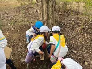 今年は園バスの導入により、子どもたちの活動範囲が広がり、念願だった、みんなで一緒にドングリ拾いに行くことができました。