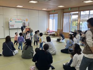 手あそび・リズムあそび・絵本や紙芝居の読み聞かせ・親子製作・親子体操など、盛りだくさんです。